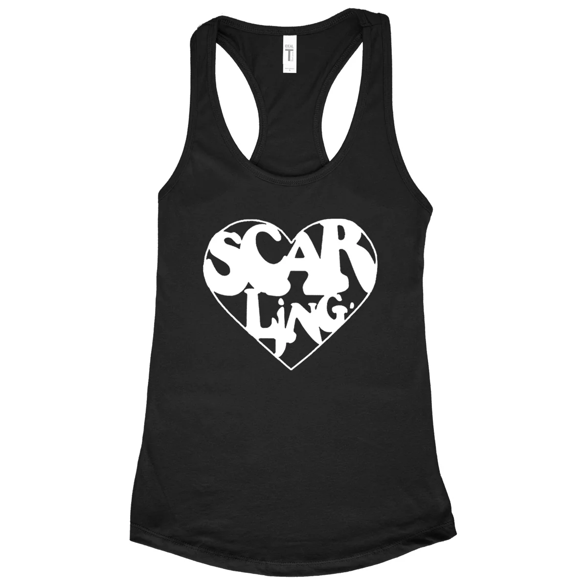 This classic Scarling design draws inspiration from the free-spirited flower-child logos of the 1960s, blending retro innocence with the band’s signature dark, dreamy aesthetic. The artwork features soft, rounded lettering and heart shapes that echo vintage peace-era iconography—reimagined with a slightly moodier, more ethereal Scarling tone.