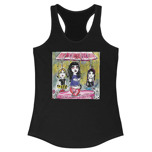 On merch here for the first time in celebration of the 25th anniversary of Clear Hearts Grey Flowers, this rare color pencil and ink sketch by Jessicka Addams marks the evolution of a concept that became iconic.