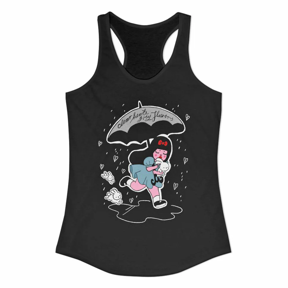 In collaboration with Jessicka Addams, Mel Stringer has created original designs to celebrate the 25th anniversary of Clear Hearts Grey Flowers. The 4th piece in the series, titled āUmbrella Girlā is inspired by the nostalgic, emotionally raw aesthetic of early Jack Off Jill artwork. Melās signature childlike and feminine style is boldly contrasted with the imagery from album lyrics, a visual metaphor that mirrors the spirit of songs on Clear Hearts, Grey Flowers: delicate, expressive, and unapologetically visceral.